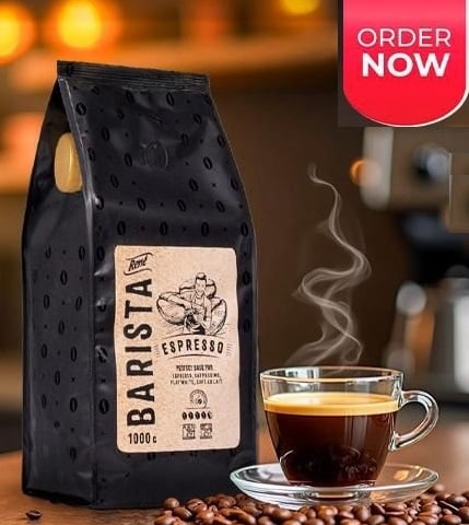 باريستا قهوة اسبريسو 70%ارابيكا 30% روبستا 1كيلو تحميصه وسط Medium roast 70%arabica beans +30%robsta أنتاج: بولندا بواسطة شركة ريني باد للقهوة