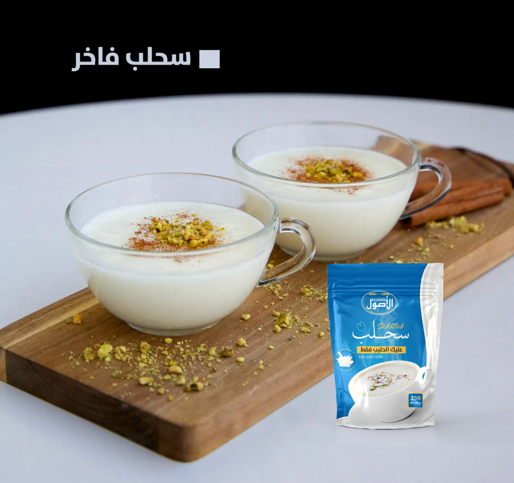 مكونات سحلب الاصول بالفانيلا :سحلبحليبنشاءفانيلاسكرطريقة استخدام سحلب الأصول الفاخر :ضعي 3 ملاعق من خليط السحلب الأصول لكل 150 مل من الحليب المغليثم يقلب جيدا لمدة نصف دقيقة اضف المكسرات المطحونة و جوز الهند مجروش وقليل من القرفة و استمتع بالمذاق الرائع .
